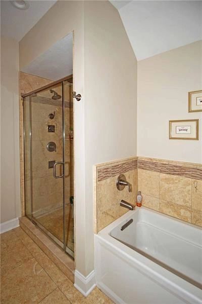 Includes a larger size full bathroom with custom stand up tile shower, upgraded niche with several shelves. Also includes his and hers vanity counter combo unit, new sink fixtures, lighting and new vent fan, new accessories, shower bar, new toilet, painting and base molding.